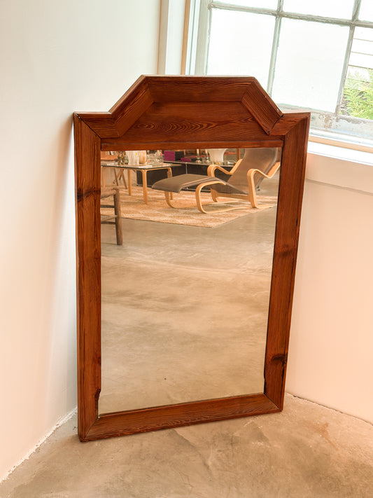 Scandinavian Pine Mirror with Stepped Crown c. 20th Century