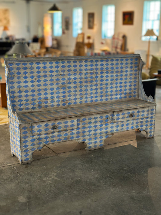 Italian Painted Bench with Blue and White Harlequin Pattern, C. 19th C.