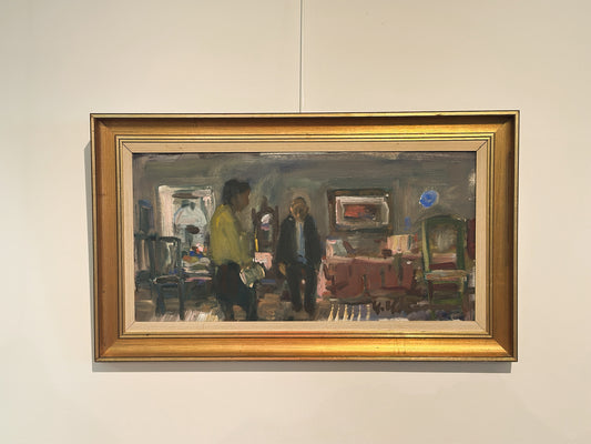 Interior View Oil on Canvas Signed by Uno Herbert Karlsson, Sweden 20th Century