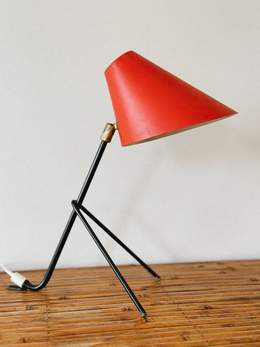 AJH 1950s RED MODERNIST TABLE LAMP, Sweden