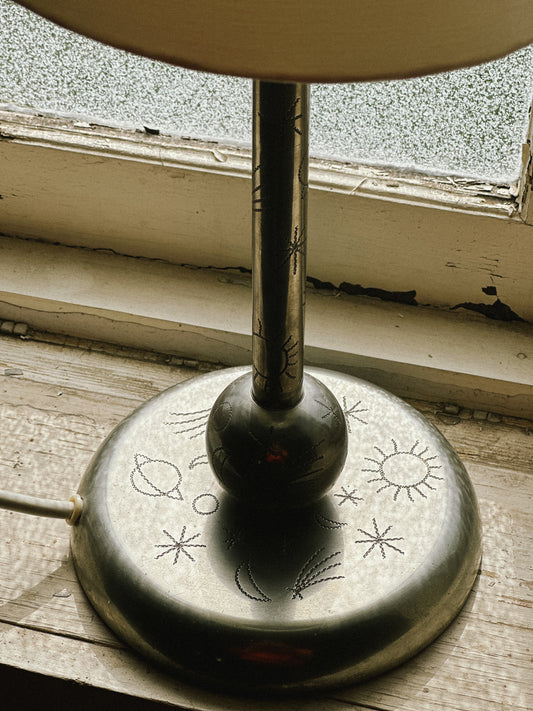 1950s BORENS GRAY METAL & BRASS TABLE LAMP, Sweden