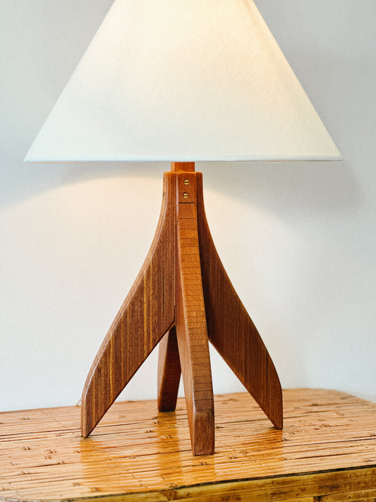 20th C. FOUR PRONGED WOODEN TABLE LAMP, Denmark