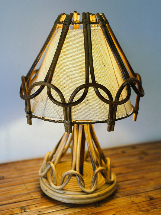 1960s PETITE RATTAN TABLE LAMP ATTRI. LOUIS SOGNOT, France