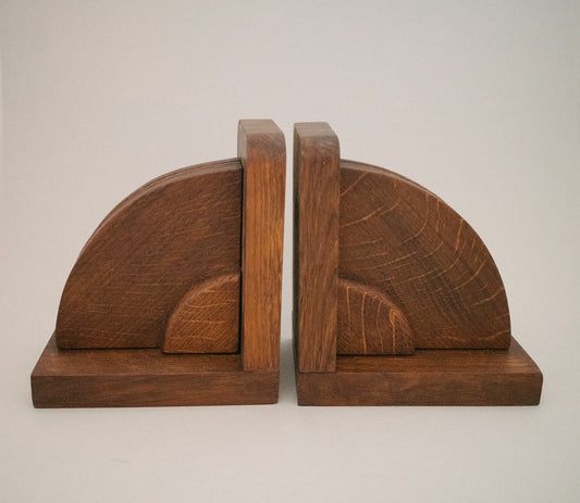 FRENCH SOLID OAK WOOD BOOKENDS C. 1940