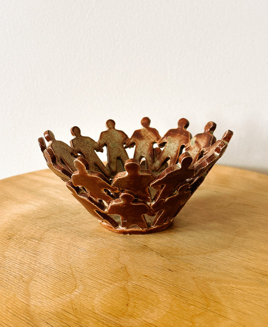 HANDMADE FIGURES CERAMIC BOWL, C. 1980