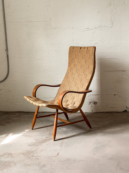 Canvas Saddle Armchair attri. to Yngve Ekstrom. SWEDEN c. 1920