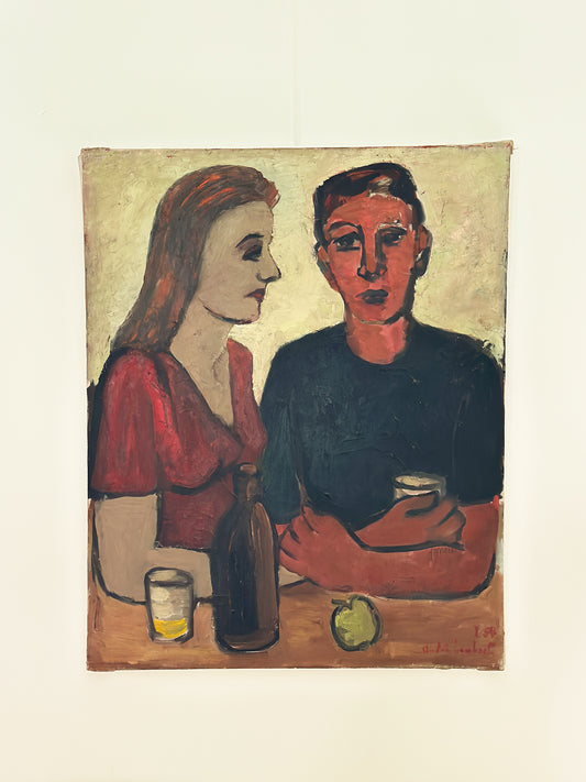 Couple Attablé by André Lambert, Oil on Canvas, Signed and Dated 1954