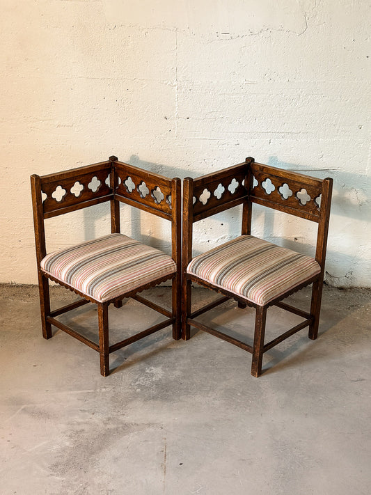 Pair of Swedish Corner Chairs with Gothic Revival Detail 19th C., Sweden