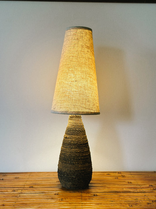 1960s PETITE RATTAN TABLE LAMP ATTRI. LOUIS SOGNOT, France