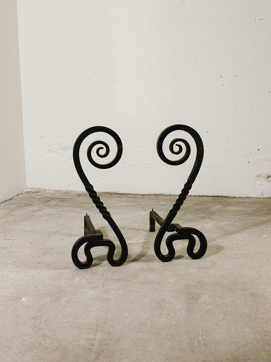 Early 20th C. Spiral Iron Andirons or Firedogs
