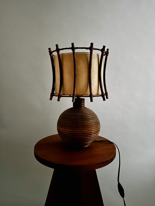 French Wicker x Rattan Lamp with Papershade c. 1960