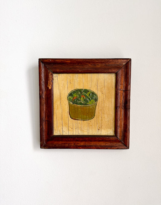 Set of 3 Wooden Paintings of Melon, Peas, Greens by Mary Jo Schwalbach, Framed