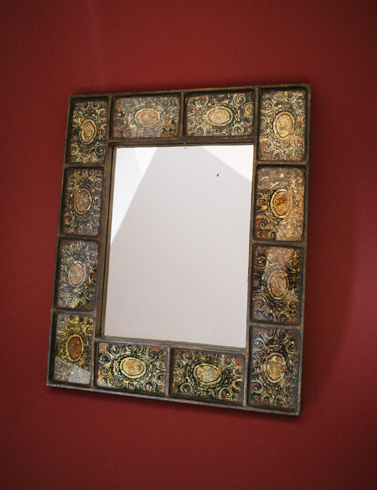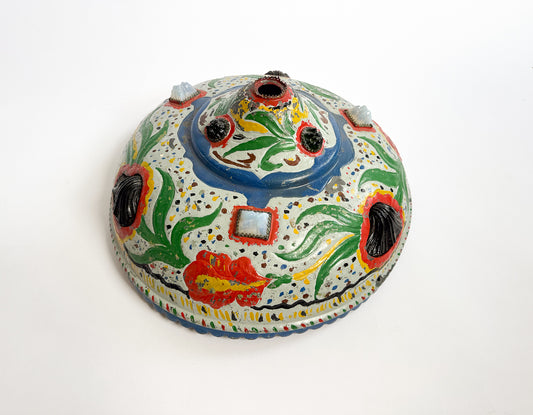 Handpainted Folk Art Metal Lampshade with stone cutouts