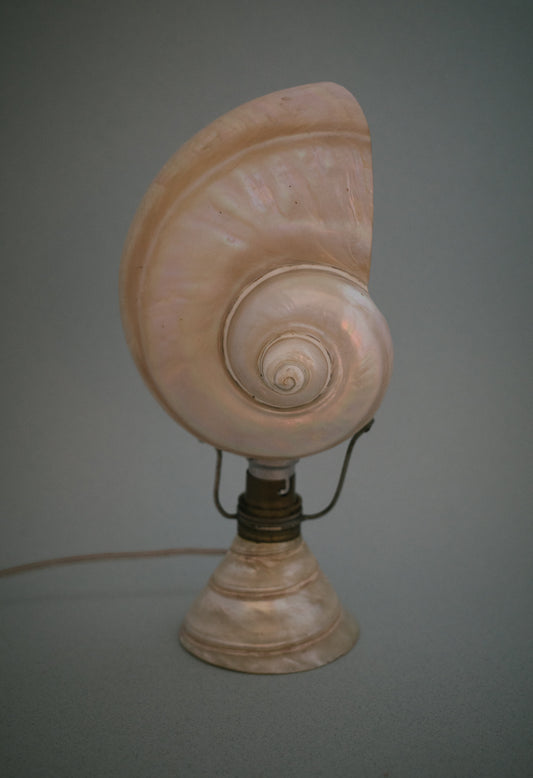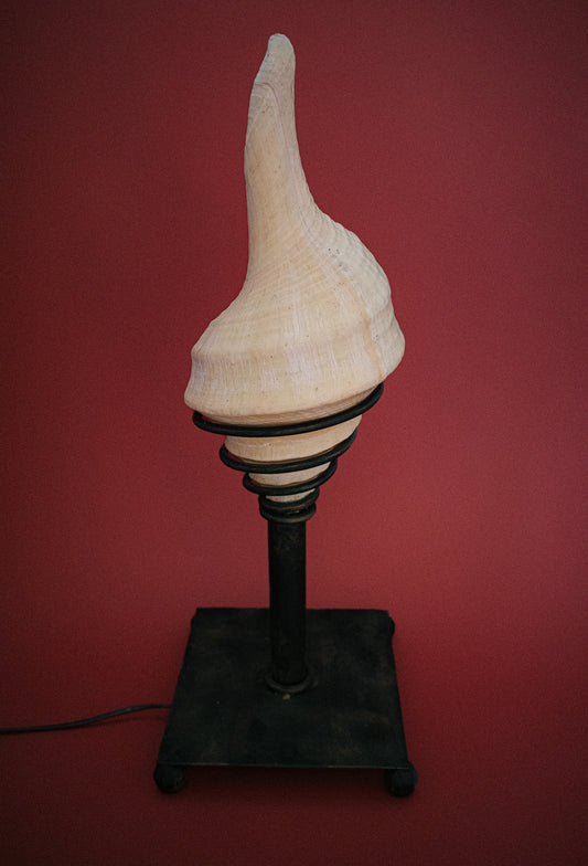 Rare Trumpet Seashell Lamp on Metal Patina Base