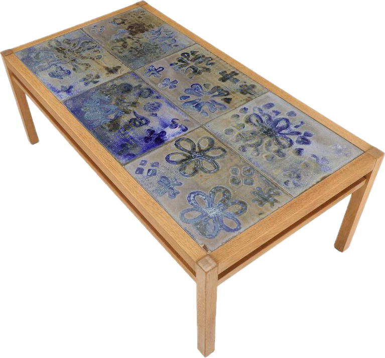 Tue Poulsen Danish Oak Coffee Table with Glazed Stoneware Tiles, Denmark c. 1960 (Coming Soon)