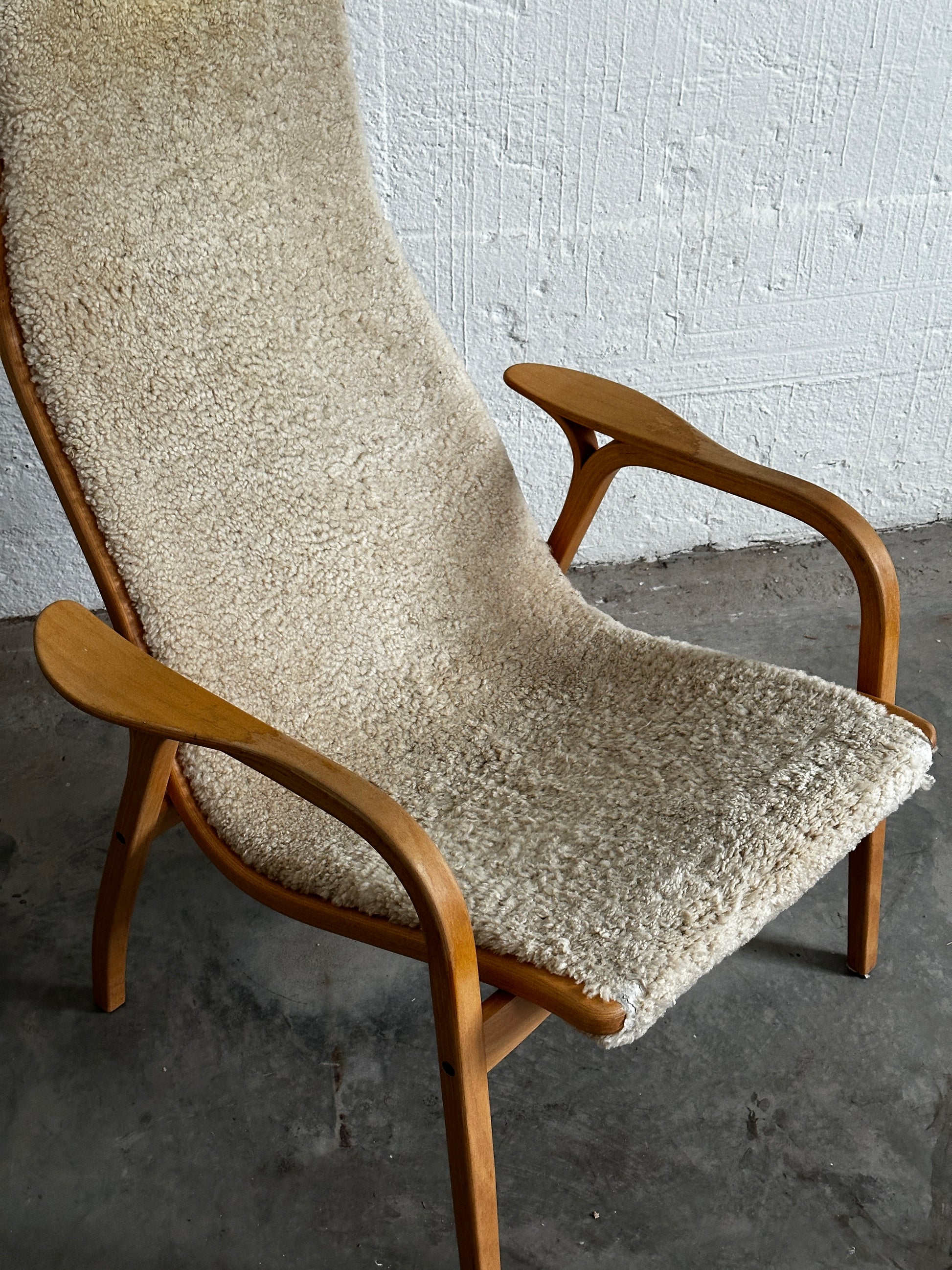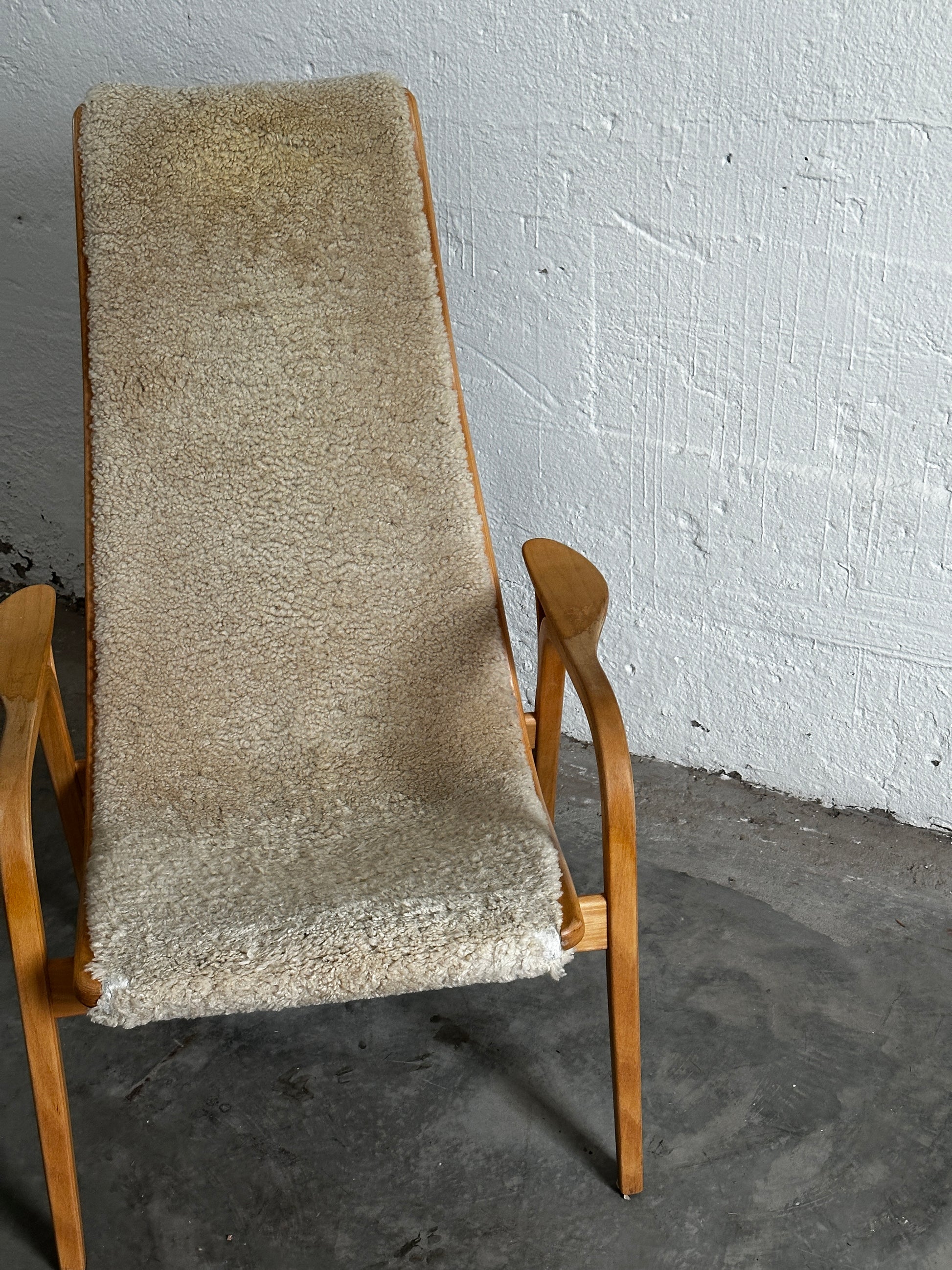 Yngve Ekström Lamino Armchair With Footstool, Beech And Natural Sheepskin c. 1970